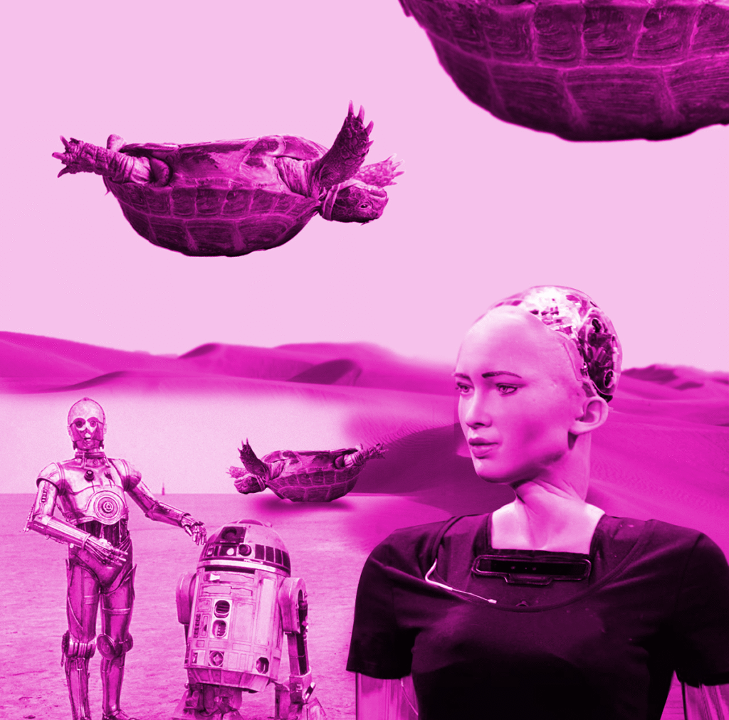 Mas nesse universo tão masculino, porque não incluir uma ginoide tão charmosa como a Sophia? [4] Afinal ela já ganhou até cidadania e de cabeça e busto, ganhou braços e até contracenou com Will Smith…