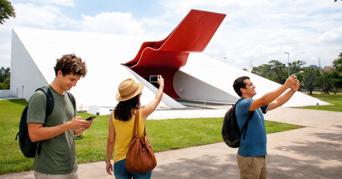 NO IBIRAPUERA, QUANDO ESTÁVAMOS POR LÁ NA FEIRINHA da marquise, vi um monte de gente andando e a princípio pareciam tirar fotos de uma maneira estranha diante das obras de Oscar Niemeyer.