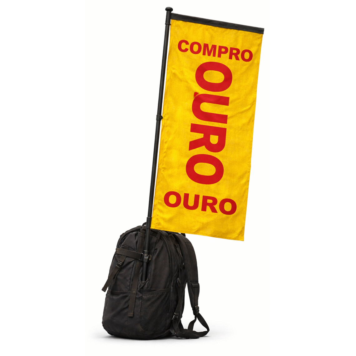 Alguns usavam as placas em sanduíche, penduradas nos ombros, e outros seguravam apenas a placa no alto de uma haste de madeira. Eu tinha ido ao centro da cidade em São Paulo para pegar um documento. Chegando na praça da Sé, notei que o estilo havia mudado e parecia com o filme Kagemusha,[1] do Akira Kurosawa. De uma mochila nas costas saía uma haste e tinha uma bandeirinha com os dizeres mágicos em dupla face: COMPRO OURO.