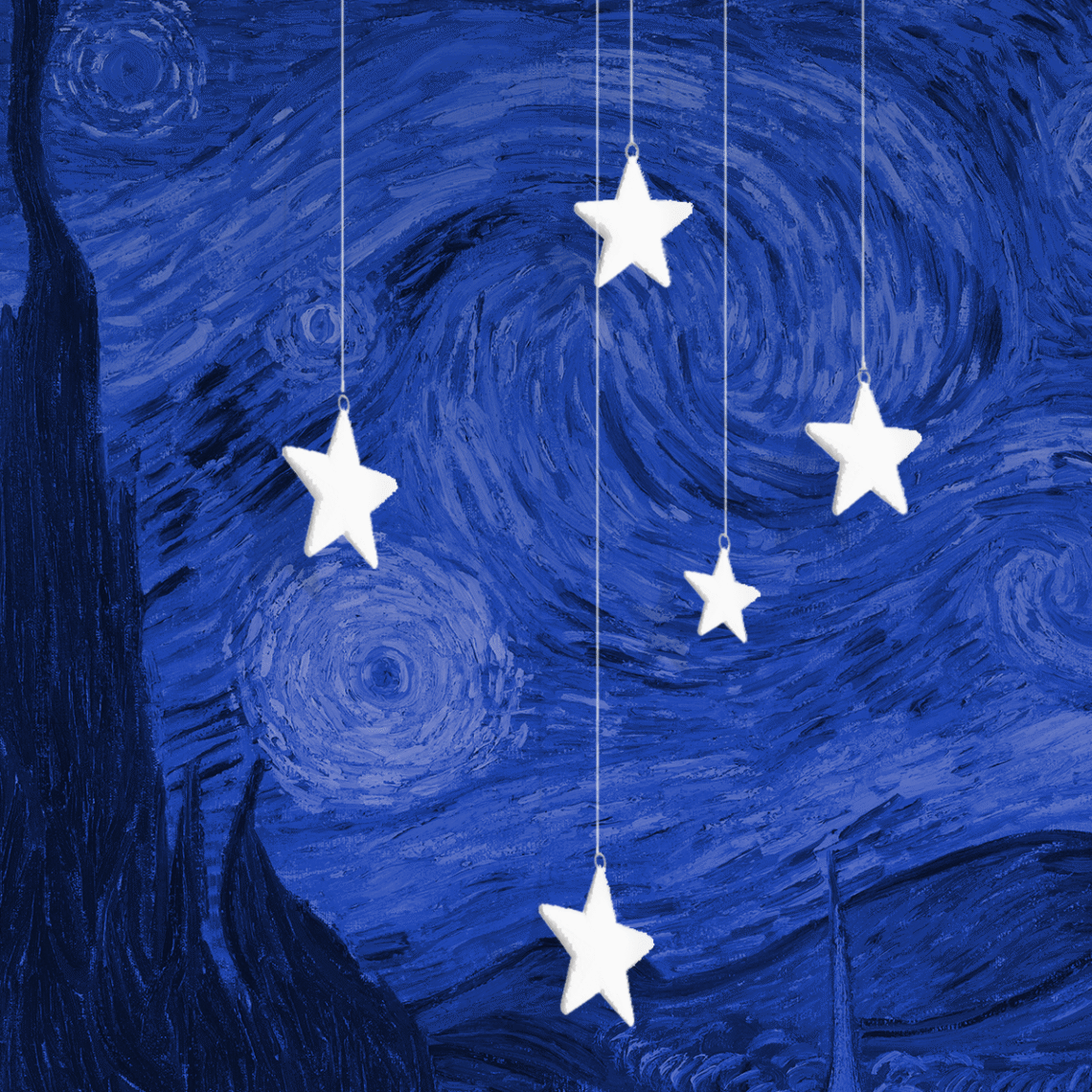Nessa época não sabia quem era Van Gogh e suas estrelas solares, mas colori algumas com canetinhas hidrocor e então tinha o meu céu estrelado colorido. Talvez não fosse um céu, estava mais pra uma parede estrelada, quase uma cortina.